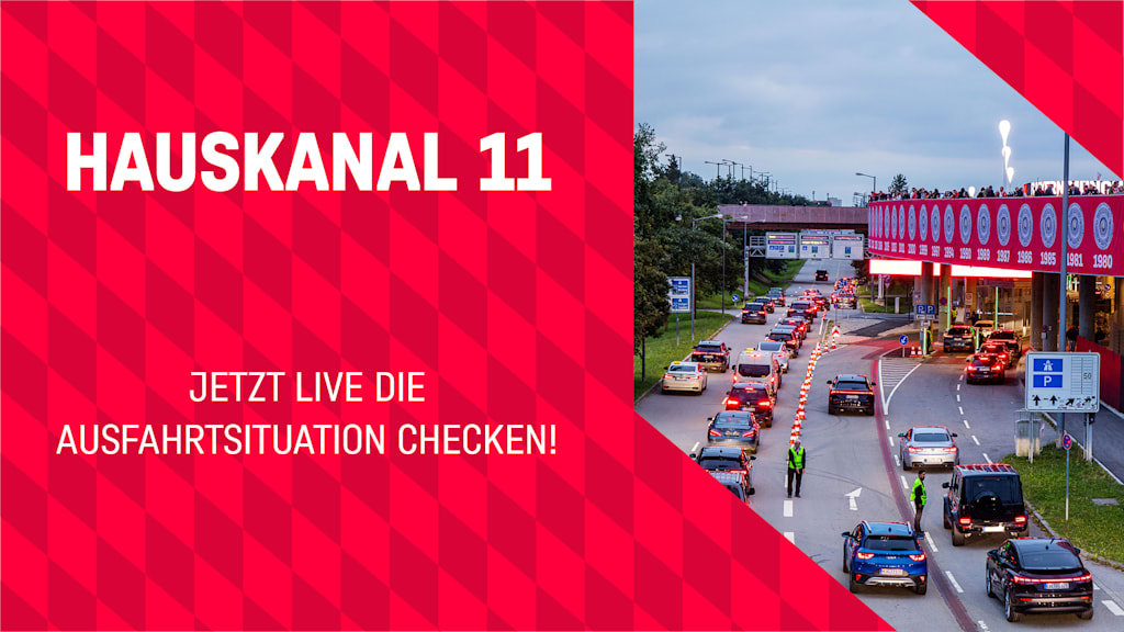 Um die Ausfahrtsituation in der Allianz Arena am Spieltag besser einzuschätzen, können Sie über den Fernseher mit dem Hauskanal 11, die Ausfahrtsituation im Parkhaus S0 und der Stadionumfahrt nach Spielende beobachten.